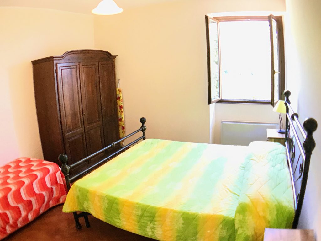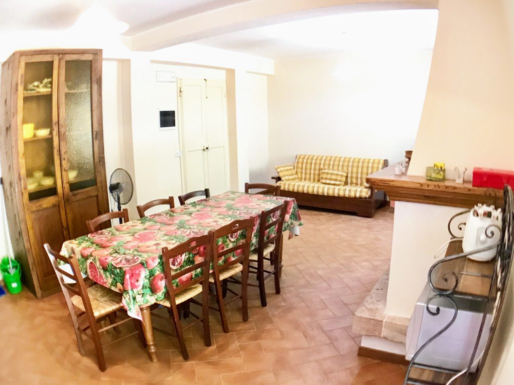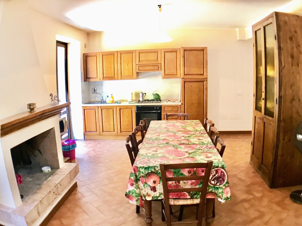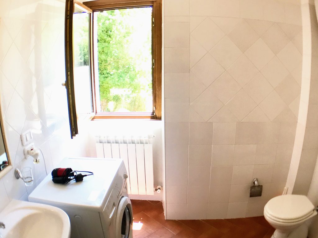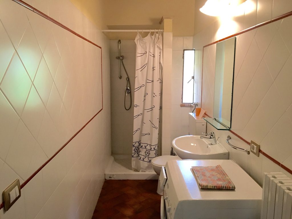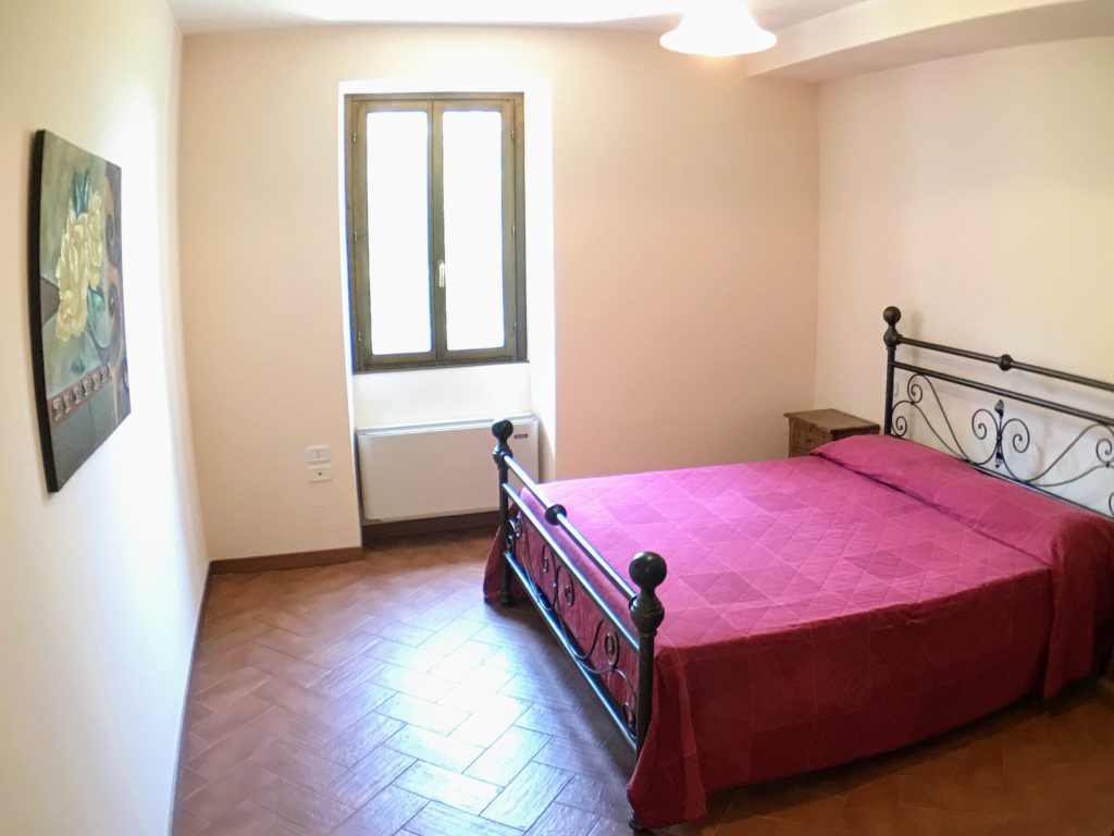 APT B/ground floor (100 sq mts) has 1 enormous sitting/dining room (with fully fitted kitchen), 2 triple bedrooms (each with double bed and single bed) + 2 shower rooms, 1 with full-sized tub. 2 extra single beds can be unobtrusively placed in an alcove in the sitting/dining room. Stunning panoramic views of mountains and valleys from all windows. Balcony, seats 4, with same stunning views towards Assisi.