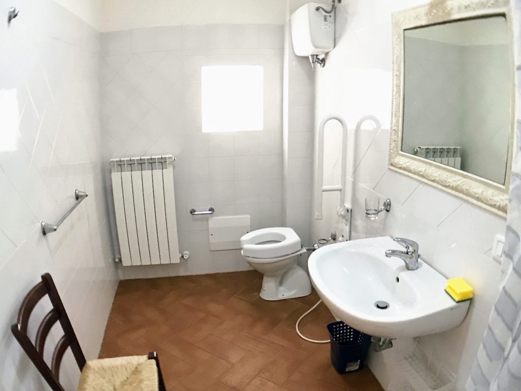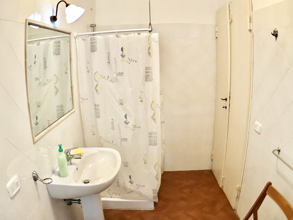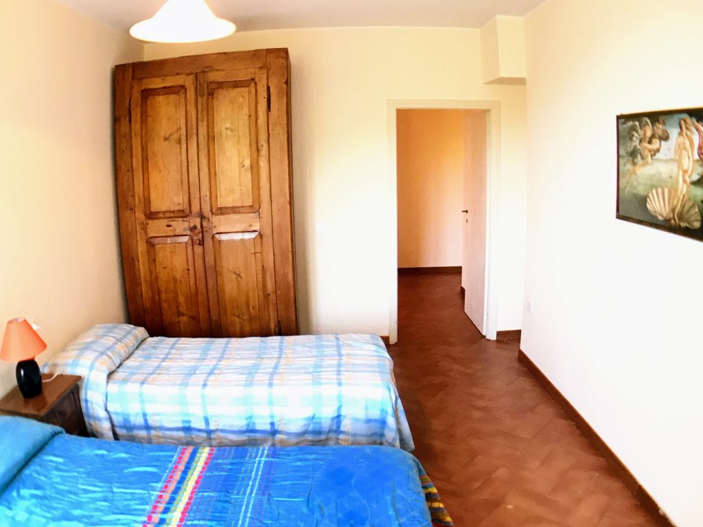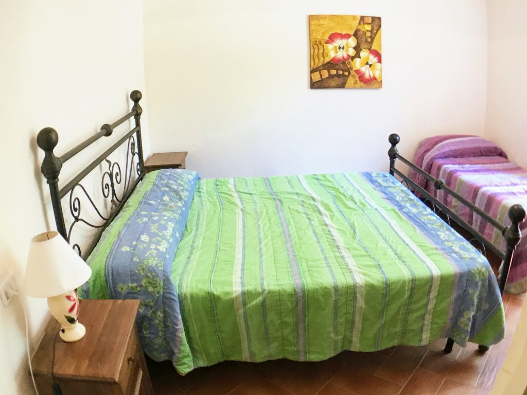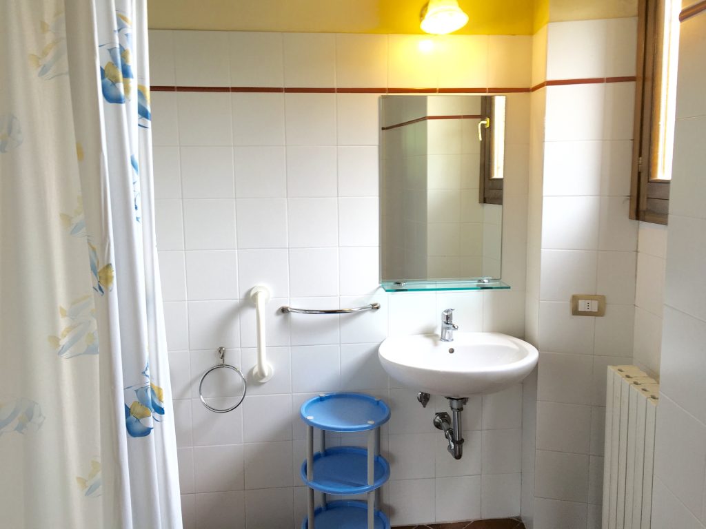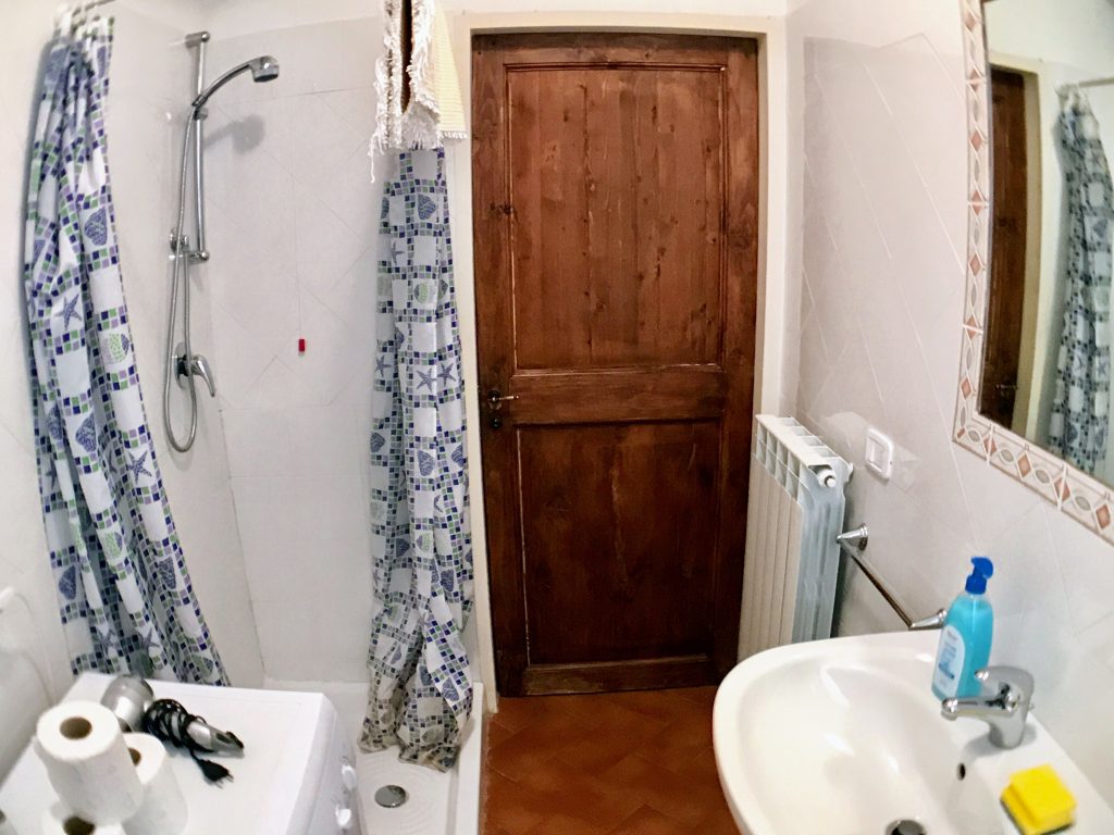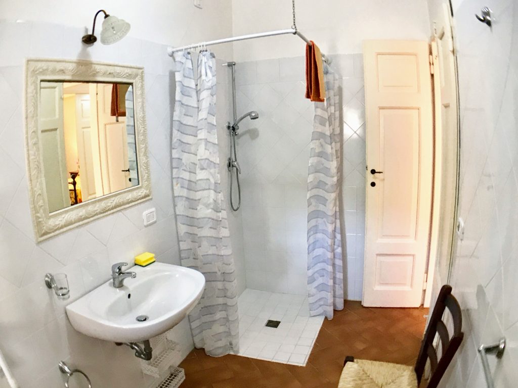 APT B/ground floor (100 sq mts) has 1 enormous sitting/dining room (with fully fitted kitchen), 2 triple bedrooms (each with double bed and single bed) + 2 shower rooms, 1 with full-sized tub. 2 extra single beds can be unobtrusively placed in an alcove in the sitting/dining room. Stunning panoramic views of mountains and valleys from all windows. Balcony, seats 4, with same stunning views towards Assisi.
