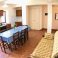 The utility room also has a galley kitchen with table and chairs to seat 6. However, the kitchen attached to the utility room is only set up for snacks and drinks, whereas the kitchen attached to the dining room is fully equipped to service a group of up to 15 persons.