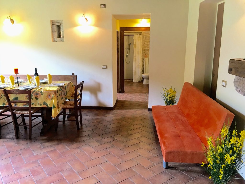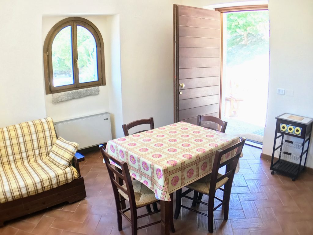The interiors of both cottages are high quality spec. They are minimalist – in tune with the modesty of St Francis who stayed in La Romantica way back when it was a hermitage, it being at the top point of his travels between Assisi and Rieti – but, adequately furnished and well equipped for a comfortable stay. The kitchens are fitted alongside one wall of the sitting/dining rooms and are fully equipped with dish washers, microwaves, toasters, ovens, fridges etc.