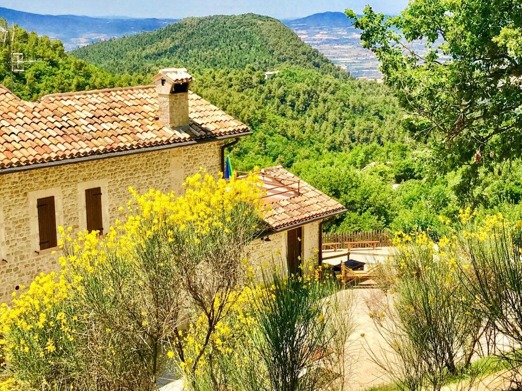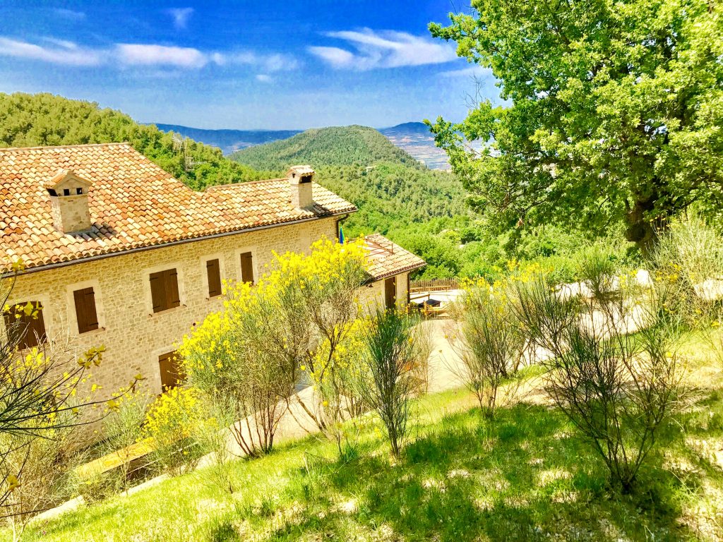 20 minutes drive/7 kms from Spoleto historic centre, on a good road that winds its way up through the most heavenly scenery, leaving the tiny fairy-tale city sprawled below, fringed by mountains and a scattering of olive groves, you arrive at your destination – 2 magnificent cottages next door to each other, each surrounded by its own private land – mountains all around, valleys below, nightingales singing. This is Heaven!