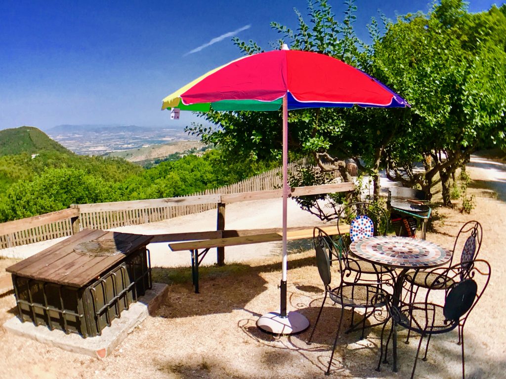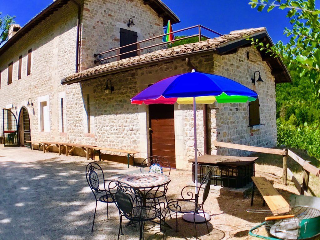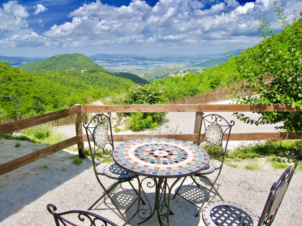 There are large private patio areas and balconies, designated to each of the apartments, with plenty of tables and parasols etc for al fresco eating, all looking onto the magnificent scenery all around. From the cottage, there are amazing panoramic views towards Assisi that stretch over valleys, mediaeval hill-top towns, olive groves and vineyards, all the way to a seeming infinity !