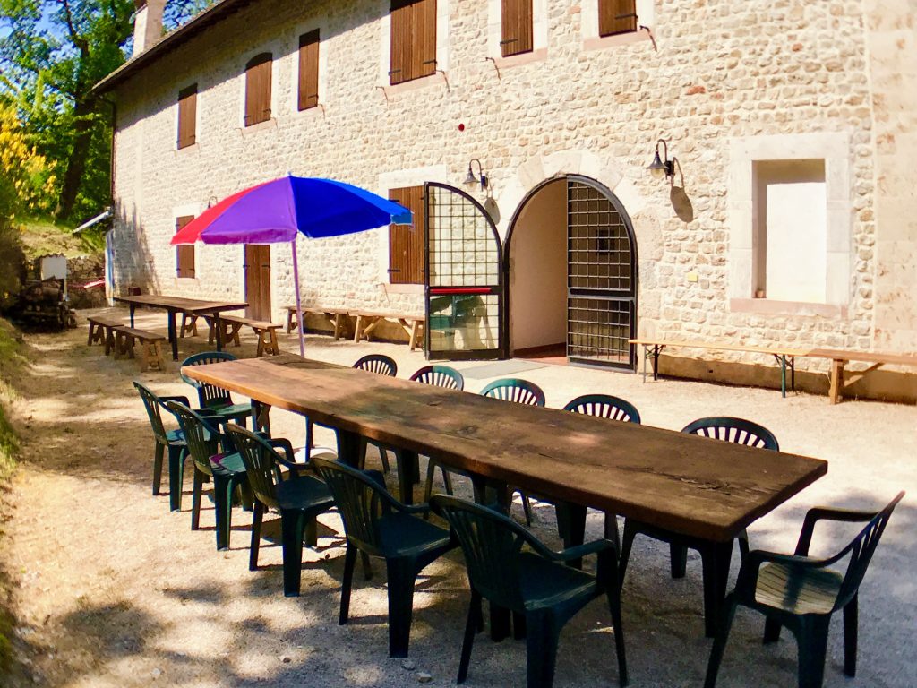 APT D/ground floor (100 sq mts) has 1 very large sitting/dining room (with fully fitted kitchen), 2 triple bedrooms (each with double bed and single bed) + 2 shower rooms. This apartment has very pretty views of hills and woods. And, it has French windows that open onto a private patio area, seats 8, with pretty hill and wood views.