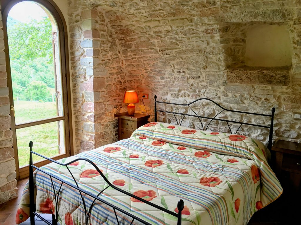La Romantic was originally a hermitage, where it is believed St Francis stayed on his regular pilgrimages between Assisi and Rieti. Centuries later, it was a ruin ! Now, it is an immaculately restored, large, stone cottage, attention having been paid to the tiniest of details. Antique cupboards and doors, riddled with worm-holes, have been carefully and lovingly preserved, restored and polished, the ancient cupboards having been “bastardised” with old glass panes – absolute works of Art. And, absolutely, no worms!