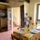 APT A/upper floor (140 sq mts) has 1 huge sitting room (where there are 2 single beds, unobtrusively placed behind the sofa), 1 huge kitchen/diner with fully fitted kitchen, 2 triple bedrooms (each with double bed and single bed) + 2 shower rooms (1 with full sized tub/both with shower units). It also boasts a superb terrace, seats 8, with fantastic panoramic views of mountains and valleys from all windows as well as terrace.