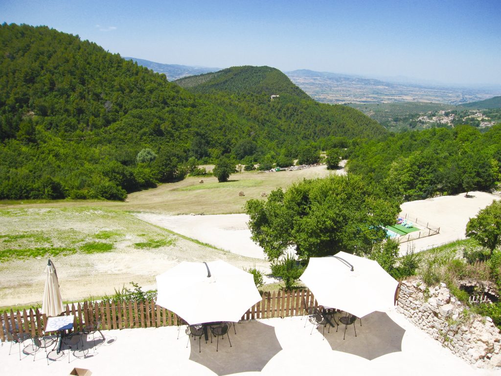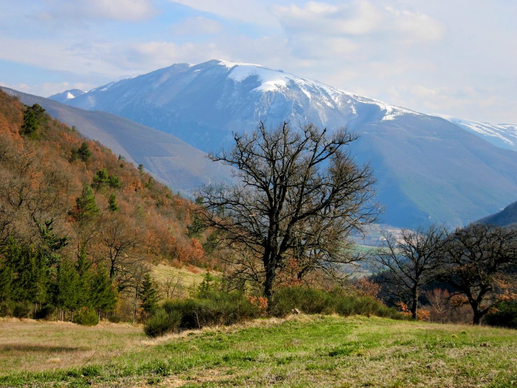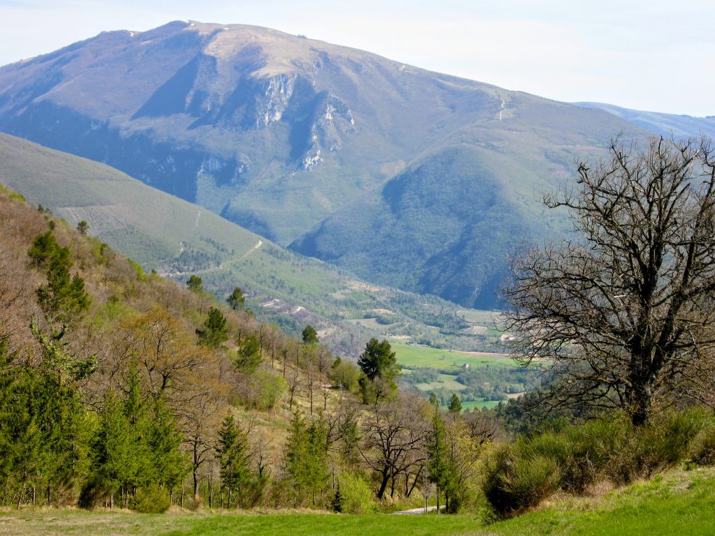 At the gate-way of La Romantica, marked by the huge, holy stone, is the famous point of Valico dei Pellegrini ie the highest point that St Francis and the pilgrims reached on their journey between Assisi and Rieti. This “St Francis” trail is 70 miles long and is the most ancient religious trail in Umbria. Indeed, there are many, many marked pilgrim tracks that lead for miles, criss-crossing each other over the mountains that seem to go on forever. Fantastic, if you enjoy rambling or hiking! And you can start right outside your door!