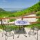 APT C/1st floor (100 sq mts) has 1 sitting/dining room with fully fitted kitchen, 3 triple bedrooms (each with double bed and single bed) + 2 shower rooms. Stunning panoramic views of mountains and valleys from all windows. Private patio area, seats 8, at the bottom of a short flight of steps.